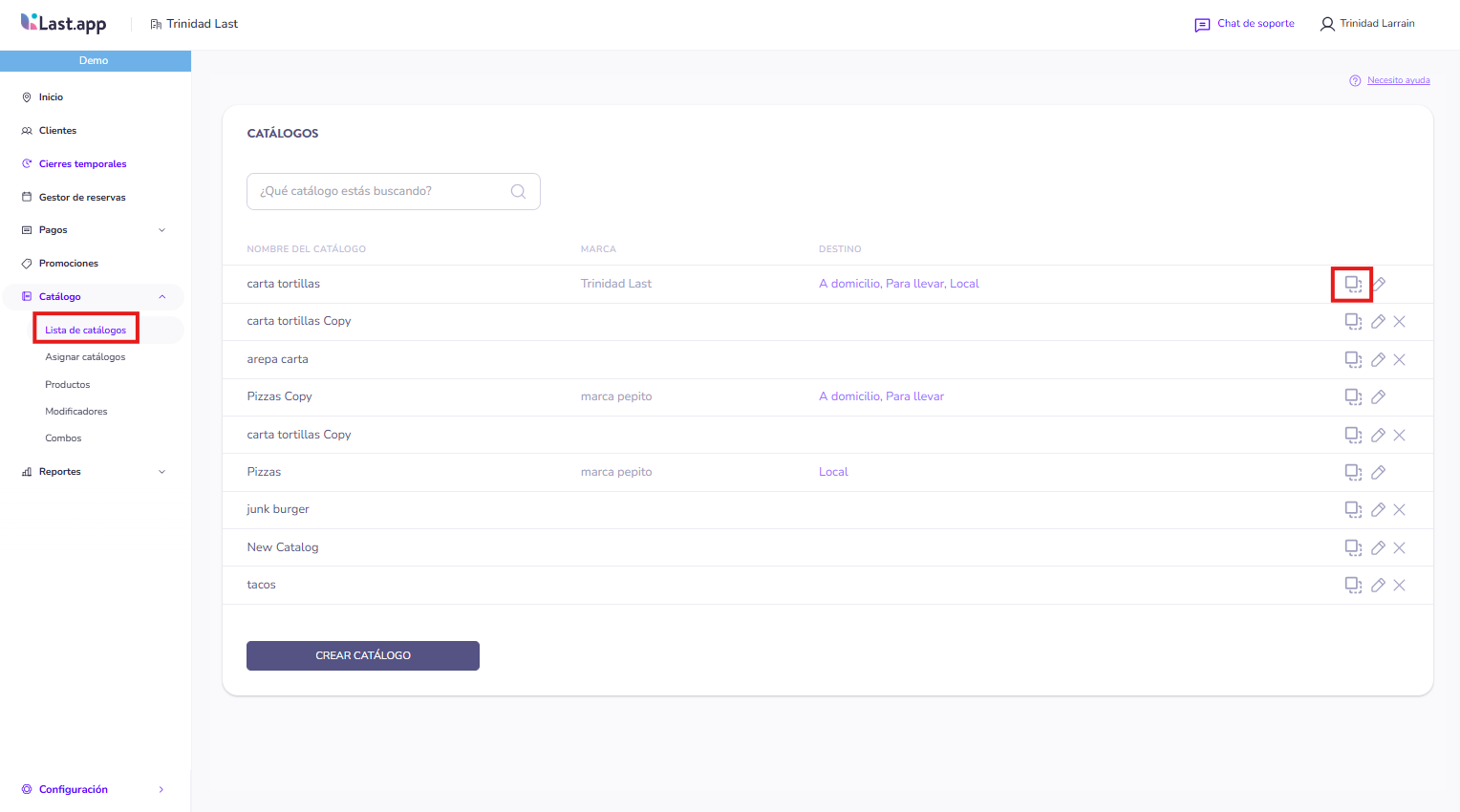 En caso de no tener aún realizado el catálogo para las plataformas de delivery, si ya contamos con el catálogo general del TPV del restaurante, y lo deseamos, podemos simplemente duplicar el catálogo existente y realizar los cambios en una copia. Para hacerlo...