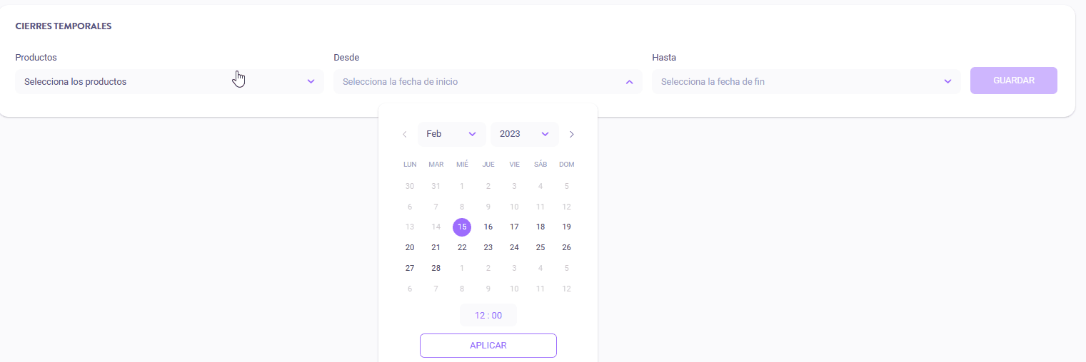 Escoge la fecha y hora de inicio del cierre: pulsa “Aplicar”