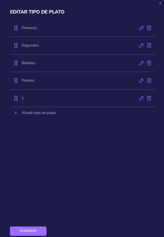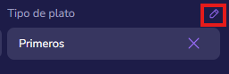 Haz clic en el lápiz al lado de "Tipo de plato".