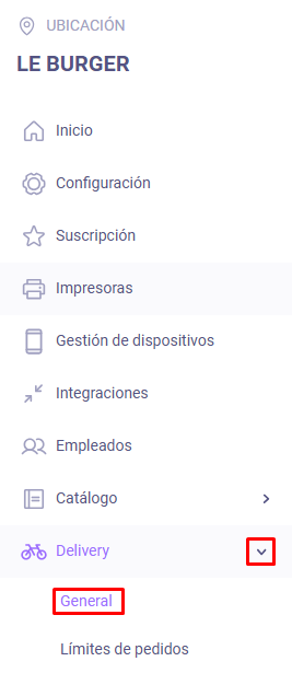 Acceder al apartado General de Delivery del panel de administración. LastAdmin | Delivery