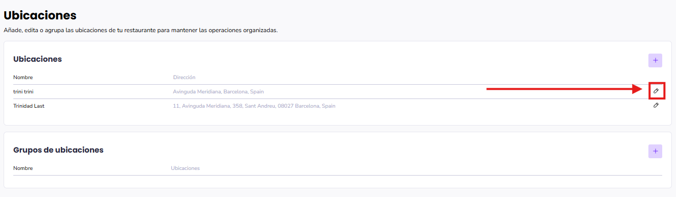 Pulsa el ícono del lápiz ✏️ para editar la ubicación que deseas modificar.