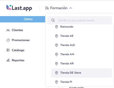 Podrás seleccionar la organización o la ubicación pulsando el menú desplegable superior: