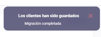 Una vez se haya completado la migración los clientes importados se podrán ver en el panel de administración una vez se sincronice con el servidor, esta acción puede tardar hasta 45 minutos por lo que no verás los clientes importados de forma inmediata.