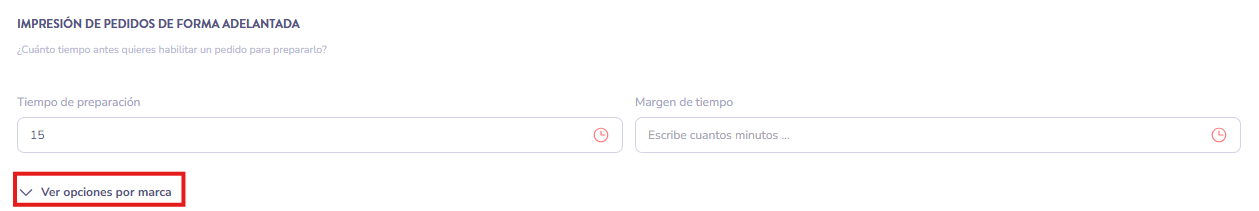 Este campo indica cuántos minutos tarda tu cocina en preparar un pedido de media. Este valor determinará cuándo se imprimen los pedidos programados en función de su hora de recogida o entrega.