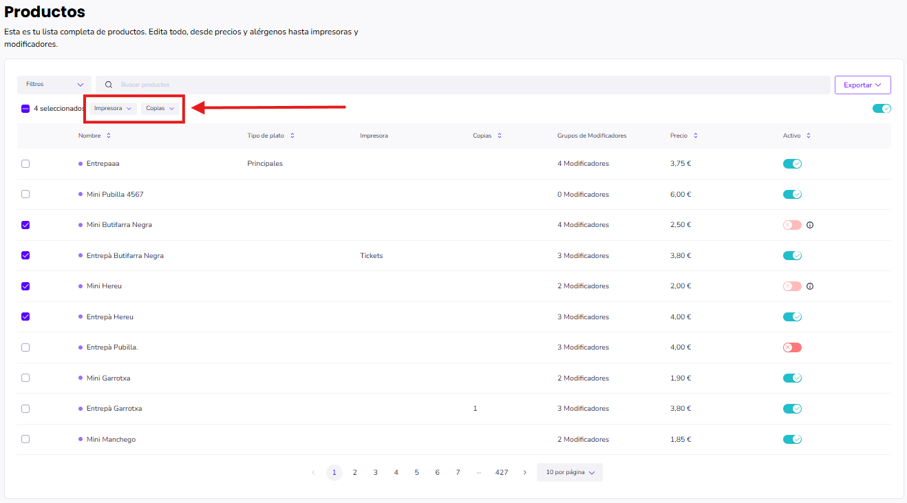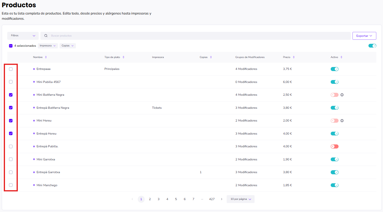 Selecciona el o los productos que desees editar.