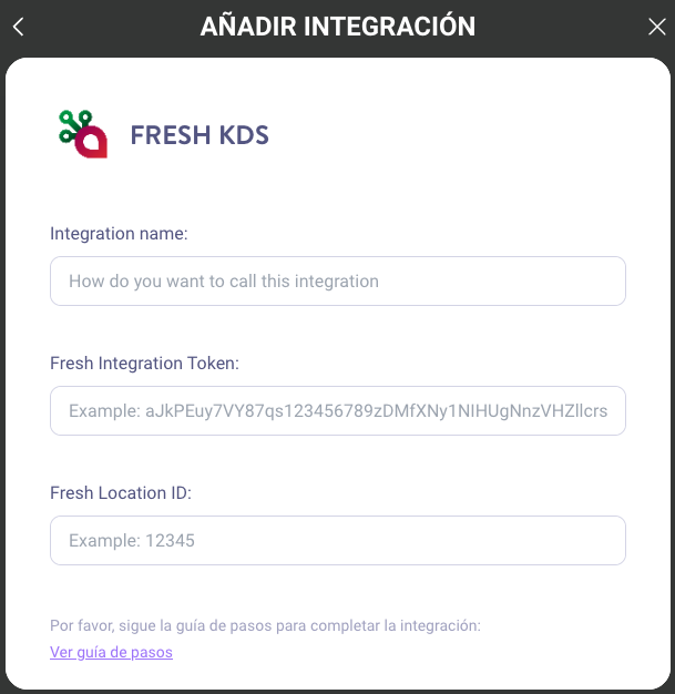 Introduce el Integration Token y el Location ID que obtuviste en Fresh.