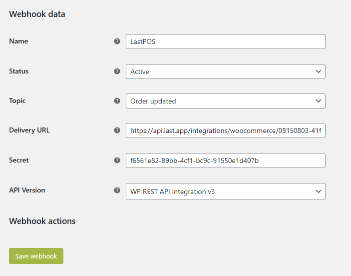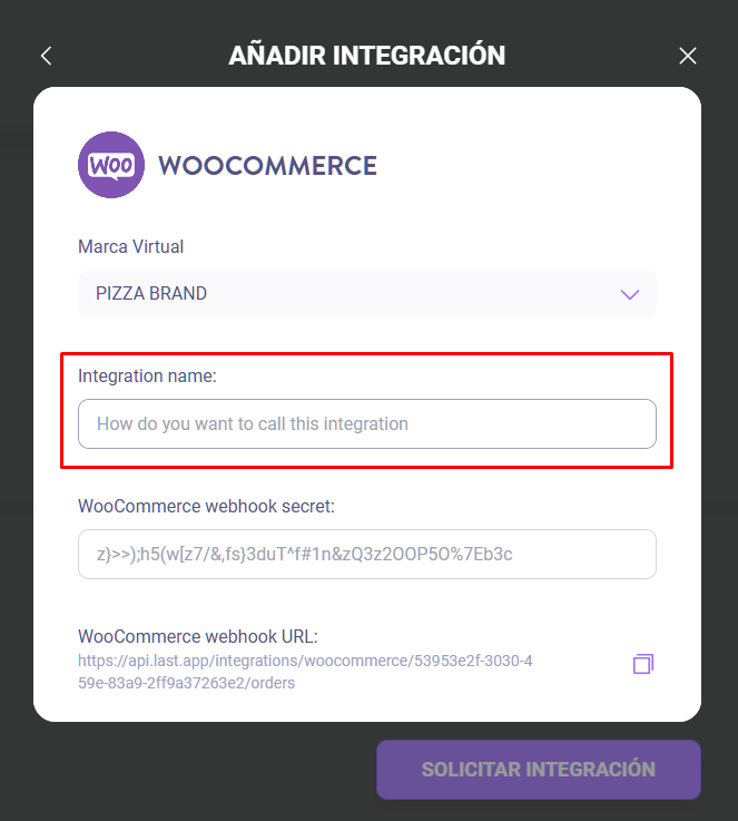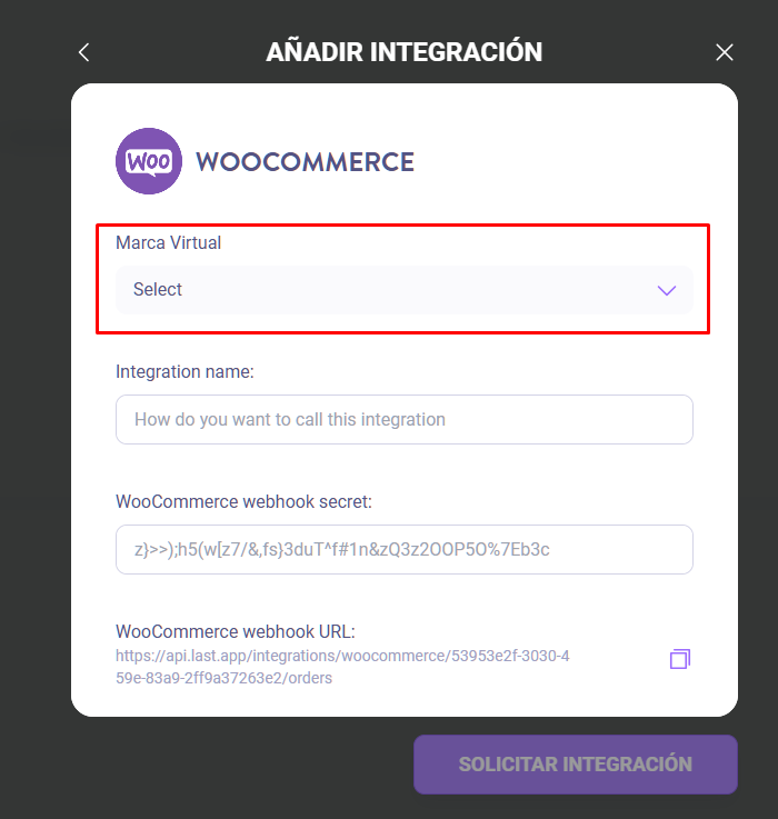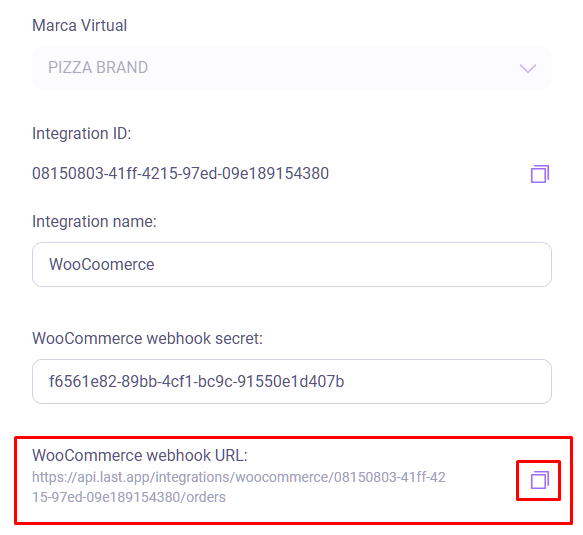 URL de entrega: La URL que verás en el panel de administración de Last al solicitar la integración de WooCommerce, puedes acceder a ella pulsando el lápiz de la integración luego de haberla solicitado.