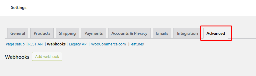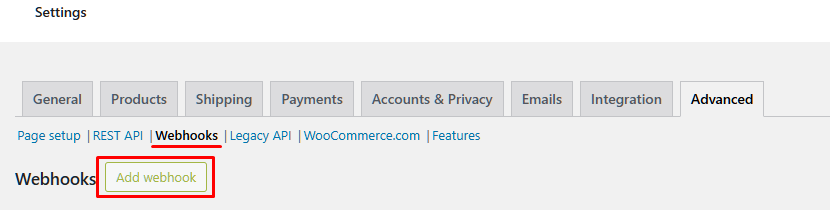 Luego accede al apartado de Webhooks y pulsa en el botón de "Add webhook".