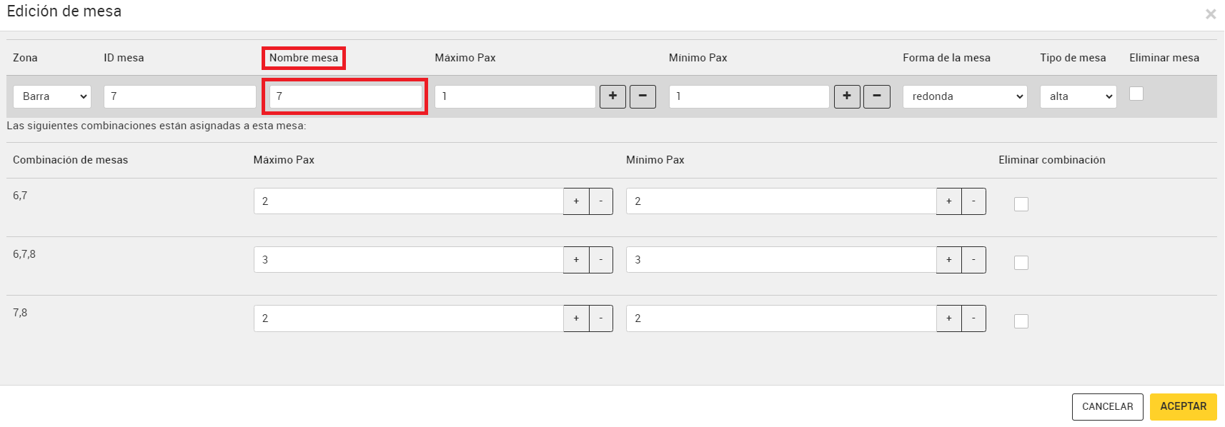 Edición de mesas en CoverManager
