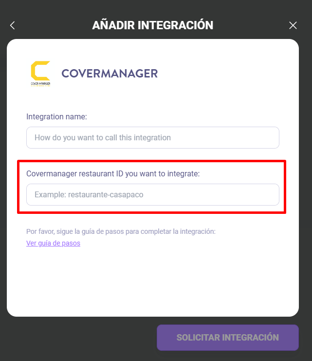 ID del restaurante en CoverManager