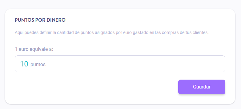 Configura cuántos puntos recibe un cliente por cada euro que gasta.