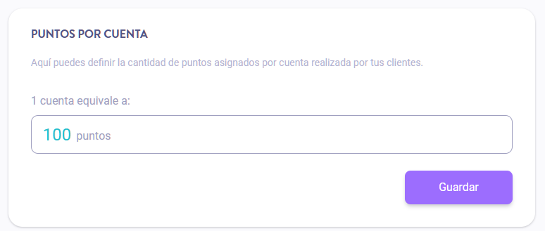 Por ejemplo, si configuras 100 puntos por compra y un cliente compra 3 veces, tendrá 300 puntos.
