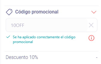 Puedes hacer que una promoción se aplique automáticamente en tu tienda online (LastSHOP). El código promocional aparecerá ya rellenado cuando tus clientes entren en la tienda.
