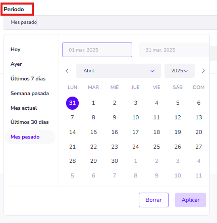 - Rango de fechas personalizado: También tienes la opción de escoger la fecha de inicio y final dependiendo de tus necesidades, recuerda que debes pulsar el botón de "Aplicar" y posteriormente "Aplicar" para que se tome el rango de fechas deseado.
