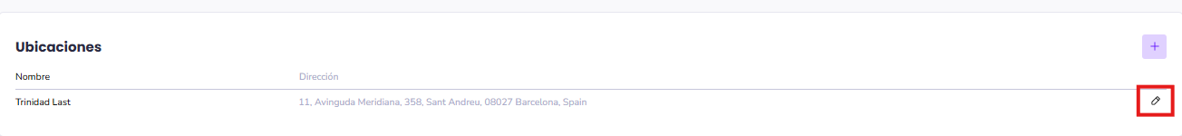 Dirígete al panel de administración | Ubicaciones y haz clic en el ícono del lápiz ✏️ junto a la ubicación que deseas modificar.