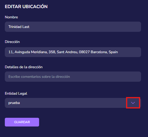 Si necesitas modificar la entidad legal asociada a una de tus ubicaciones — por ejemplo, porque ha cambiado la empresa, la razón social o los datos fiscales (CIF/NIF, dirección fiscal) —, puedes hacerlo directamente desde el panel de administración de Last.app.