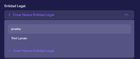 Selecciona la opción "Crear nueva entidad legal".