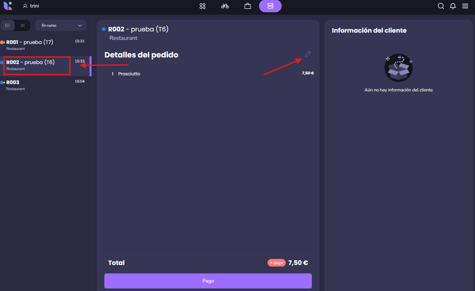 Para cerrar una cuenta que no ha sido cobrada deberás pulsar el ícono de la papelera. Para acceder al ícono de la papelera hay dos maneras: