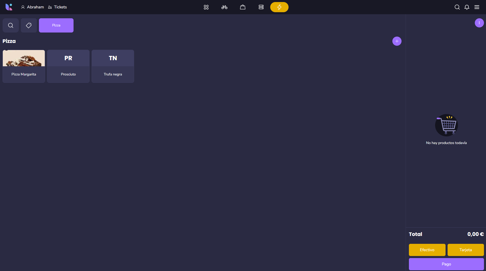 El FastMode está creado para poder simplificar y acelerar tu proceso de venta al máximo. En el verás, el catálogo asignado a tu tienda con el que crearás tu pedido y 3 botones, dos de ellos de pago rápido ( con los métodos de pagos que tengas configurados para tu POS) y un tercer botón que te guiará al pago avanzado en caso de que necesites dividir cuentas, realizar pagos específicos de productos o agregar descuentos.