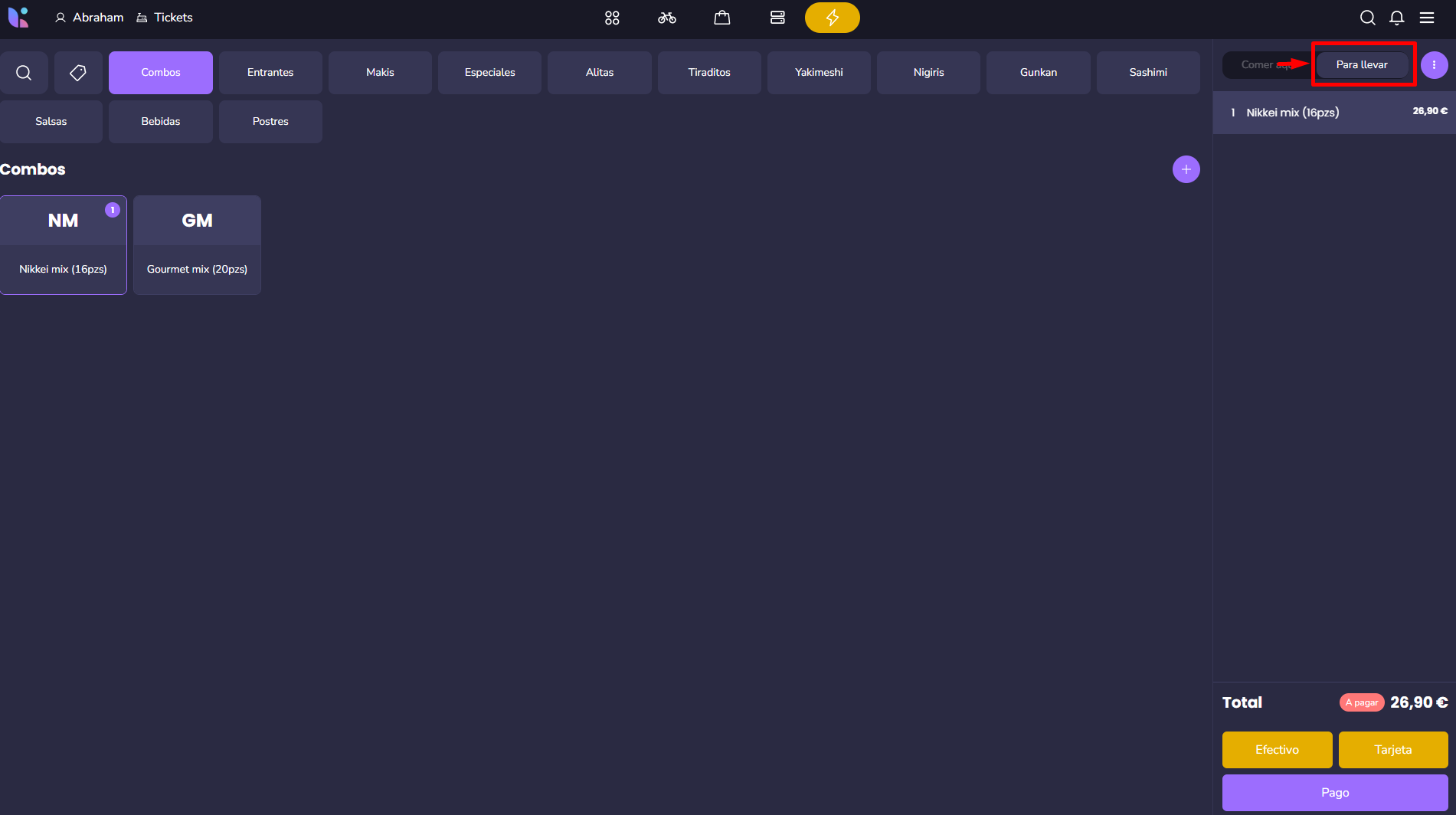 Una vez selecciones alguno de los dos botones de pago rápido, el pedido se cerrará como pagado, se enviarán las comandas a cocina y se imprimirá el ticket para el cliente