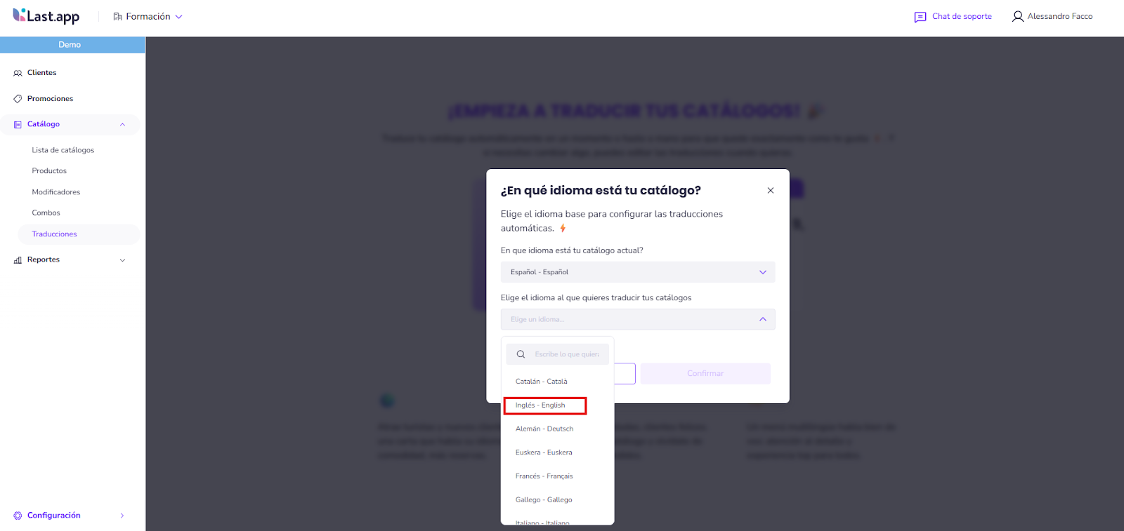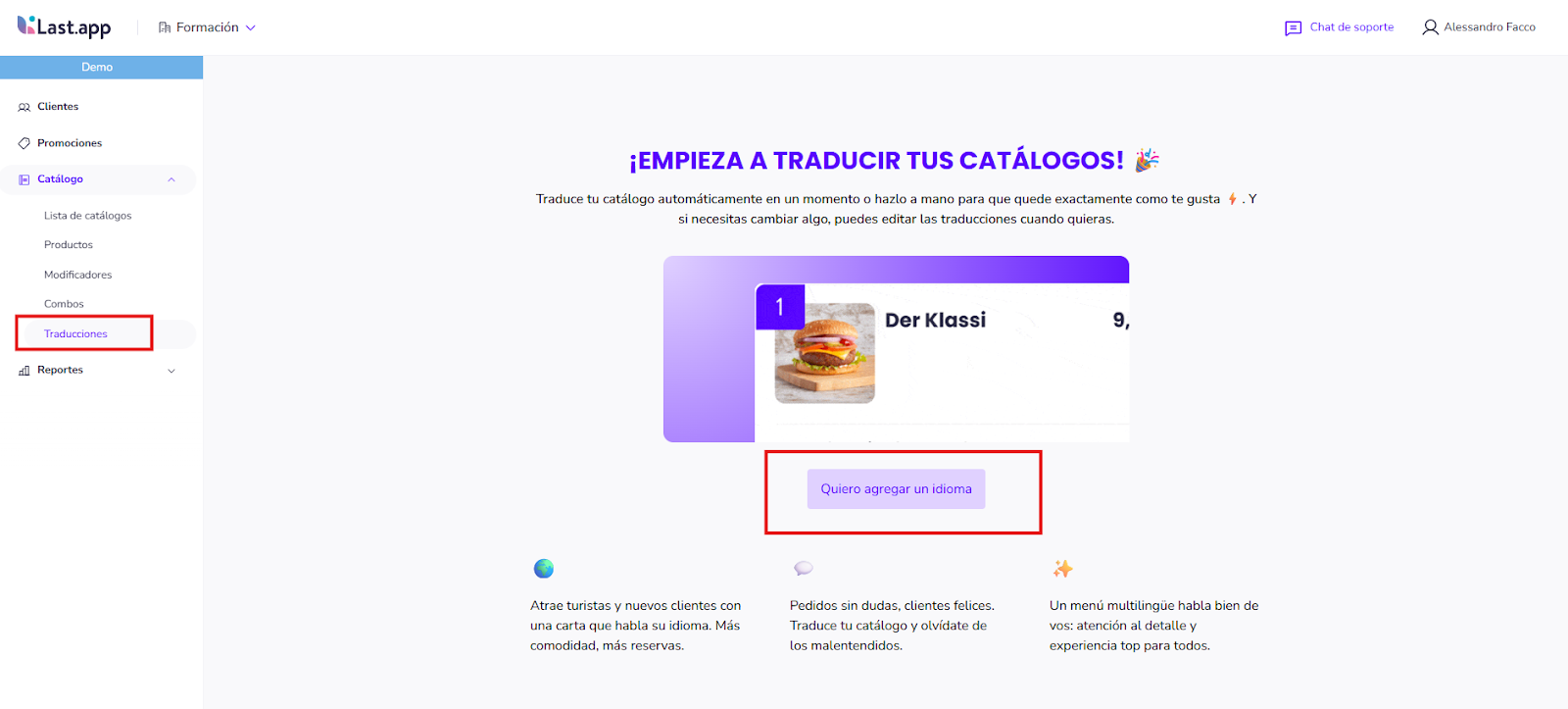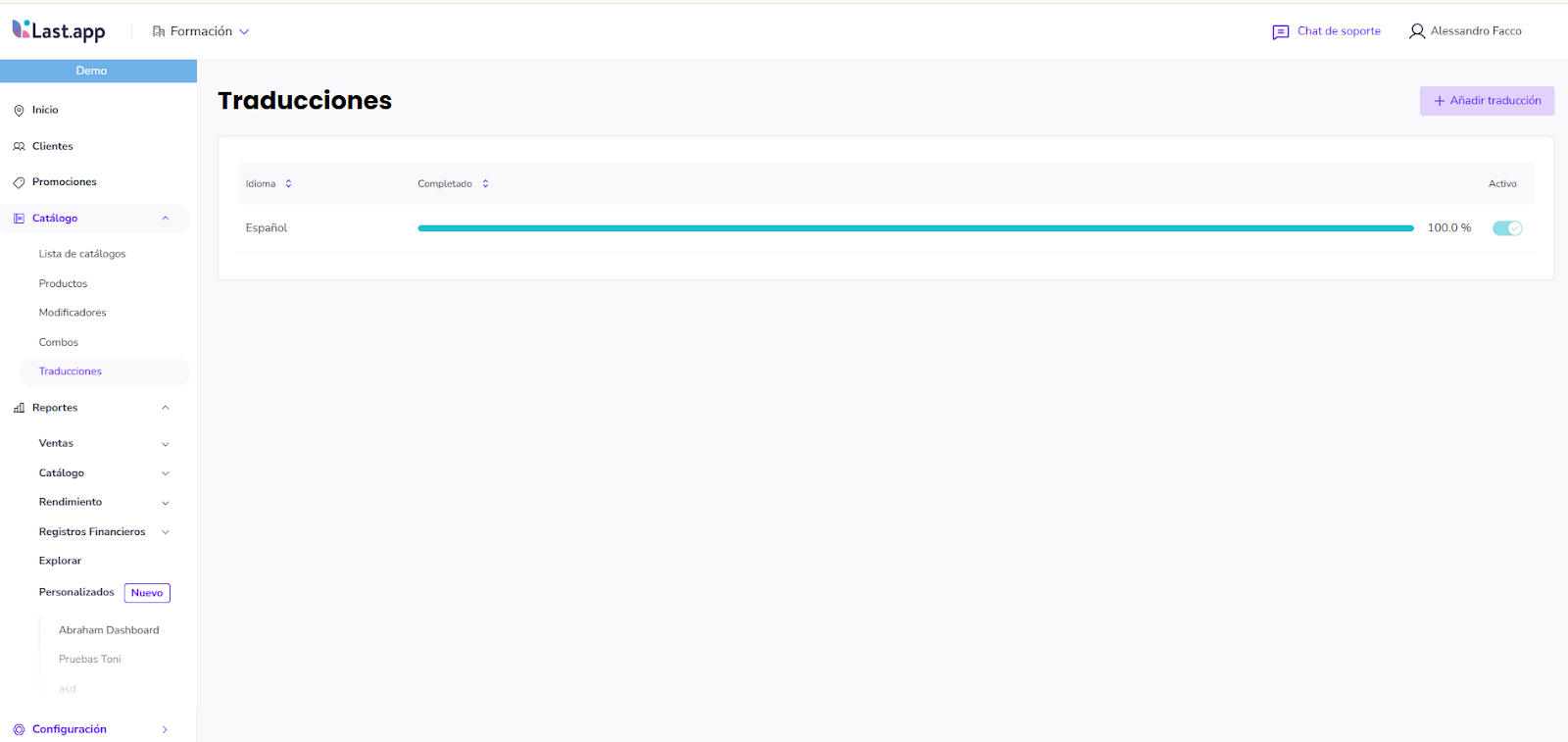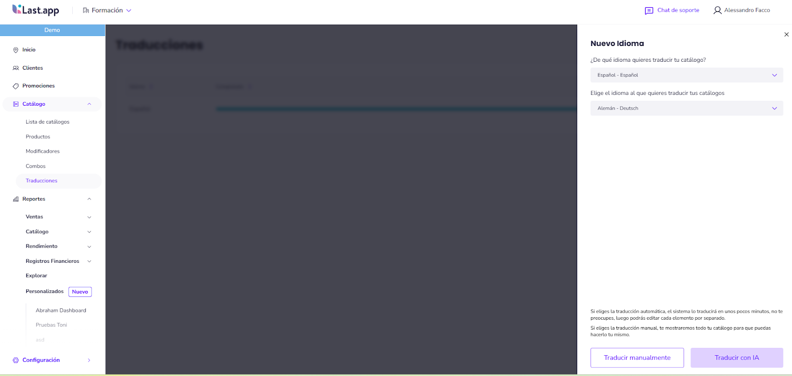 En Last.app puedes configurar tu catálogo de productos para que esté disponible en varios idiomas. Esta funcionalidad es ideal para restaurantes que atienden a clientes internacionales, operan en zonas multilingües o trabajan con plataformas de delivery que requieren descripciones en distintos idiomas.