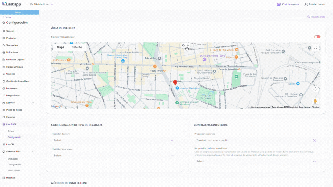 En LastSHOP, te ofrecemos la flexibilidad de gestionar tus entregas de forma eficiente. Puedes definir con precisión las zonas de entrega utilizando polígonos sobre el mapa, permitiéndote adaptar el servicio a tus necesidades operativas. A continuación, te mostramos cómo crear y gestionar tus zonas de entrega.