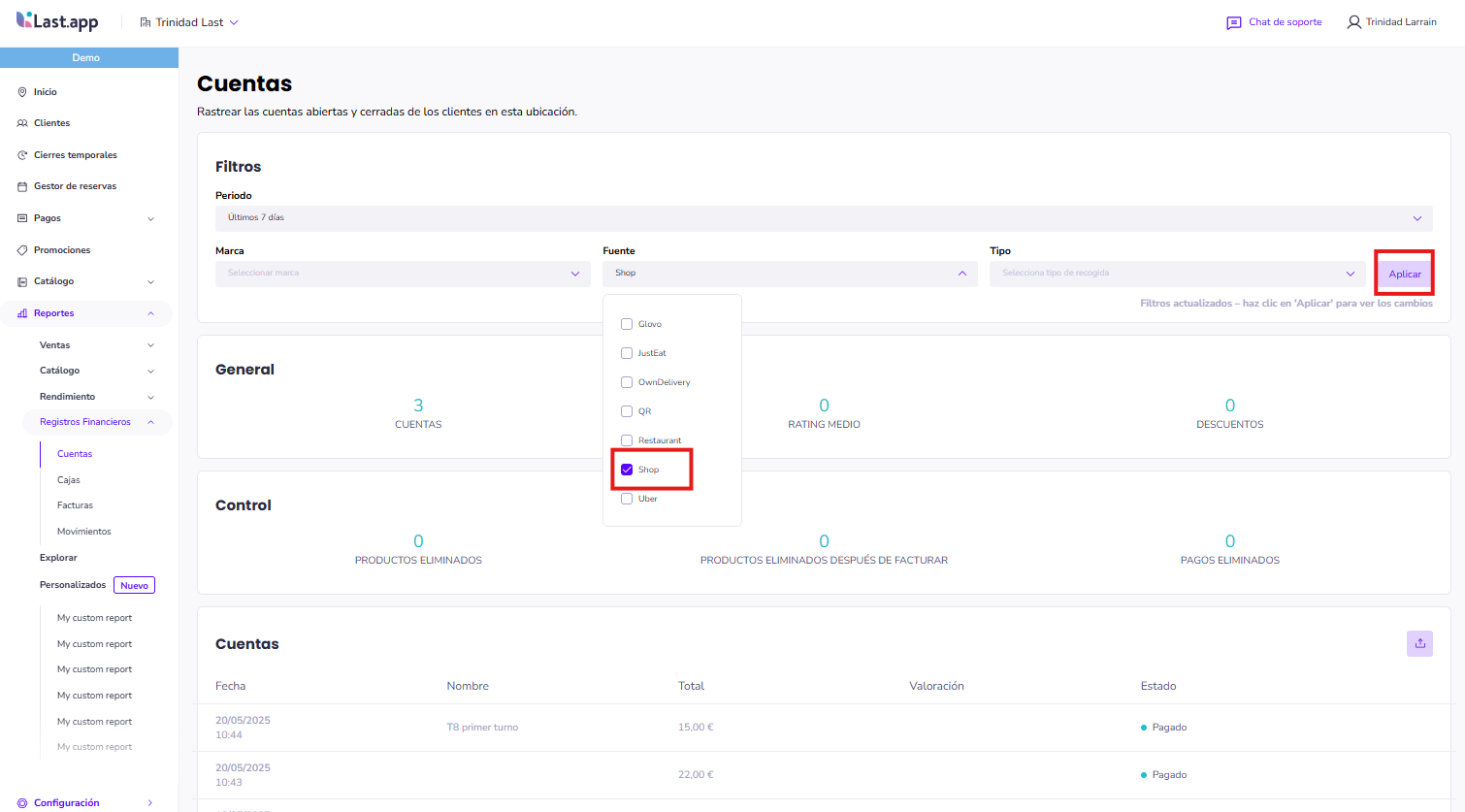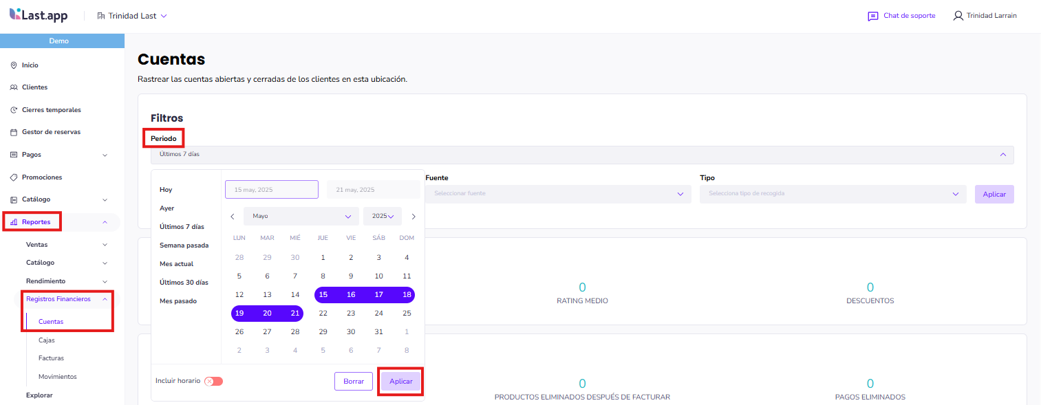 Dirígete al apartado Reportes | Registros financieros |Cuentas.