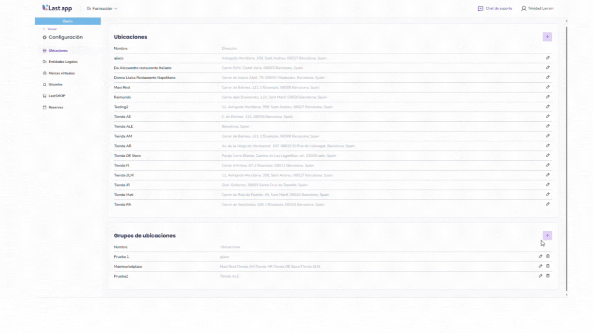 Entra a la sección Ubicaciones dentro del panel de administración.