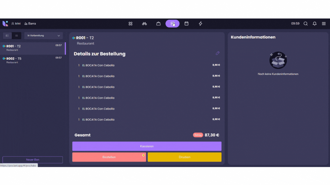 Klicke erneut auf „Bestellen“, um einen neuen Hinweis an die Küche zu senden, der das gelöschte Produkt berücksichtigt.