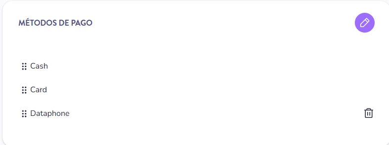 3. Debería quedar de la siguiente manera el apartado de métodos de pago: