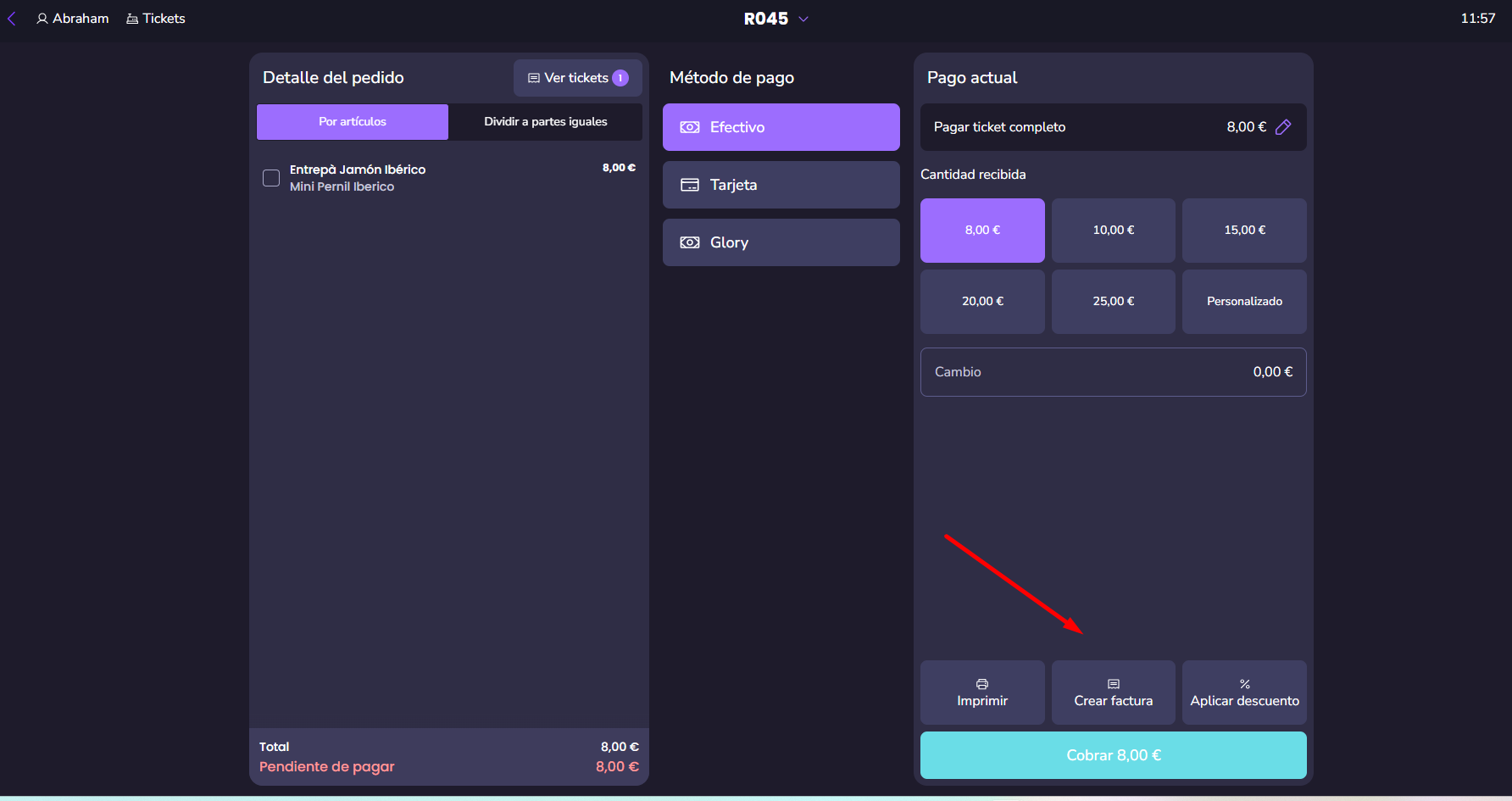 - Abajo a la derecha encontrarás la opción de crear factura.